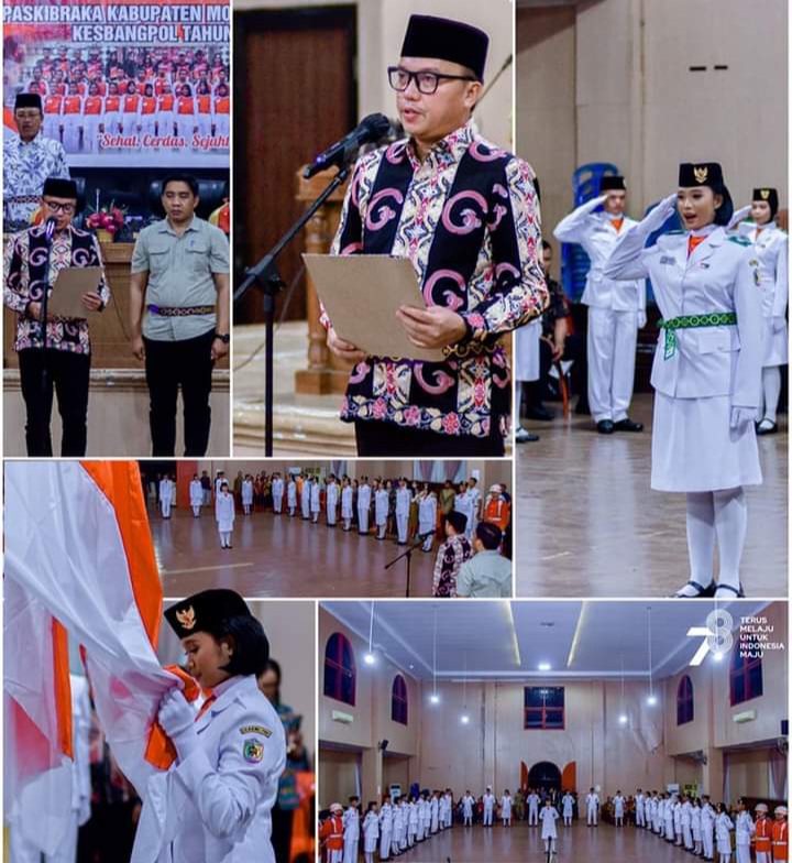 FAJAR BANGGAI, MORUT – Bupati Morowali Utara (Morut) Delis Julkarson Hehi mengukuhkan Pasukan Pengibar Bendera Pusaka (Paskibraka) yang akan bertugas memperingati Hari Kemerdekaan RI ke-78 jatuh pada 17 Agustus 2023. Pengukuhan itu dilangsungkan di ruang Pola Kantor Bupati Morut, Minggu (13/8/2023) malam.