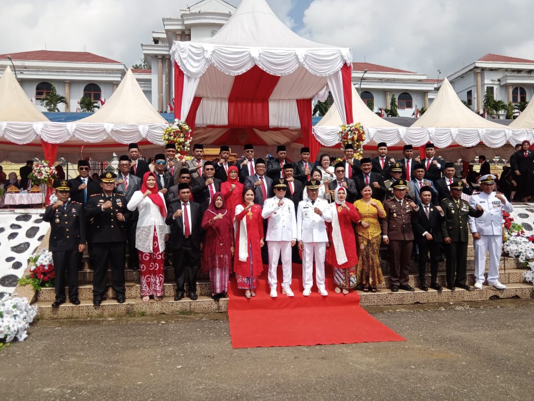 Dalam sambutannya, Bupati Delis menyampaikan ucapan selamat memperingati Hari Kemerdekaan Republik Indonesia dengan tema HUT RI tahun ini ‘Melaju Bersama Untuk Indonesia Maju’.