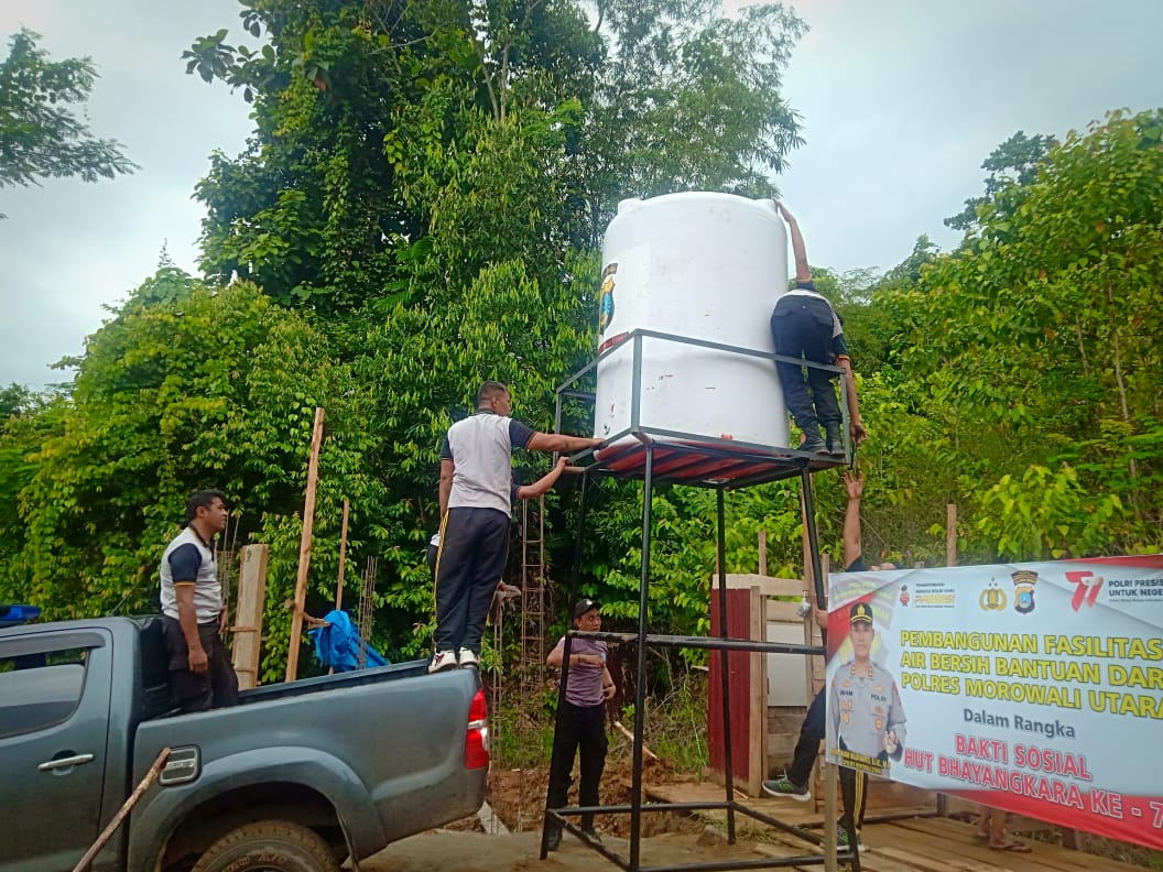 Kapolres Morowali Utara, AKBP Imam Wijayanto. S.I.K., M.H kepada media ini menjelaskan, bahwa pembangunan fasilitas air bersih merupakan rangkaian kegiatan Polres Morowali Utara dalam menyambut Hari Bhayangkara ke – 77. “Iya benar ini merupakan salah satu rangkaian kegiatan Polres Morowali Utara dalam menyambut HUT Bhayangkara sekaligus membantu warga Dusun Mata dalam mendapatkan pasokan air bersih dan wudhu di Mesjid Mifta Hujannah,” jelas Kapolres, Sabtu (17/6/2023).