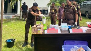 Pemusanahan barang bukti yang telah berkekuatan hukum tetap (inkracht) yang amar putusannya dirampas untuk dimusnahkan, berlangsung di halaman Kantor Kejaksaan Negeri Banggai Laut.